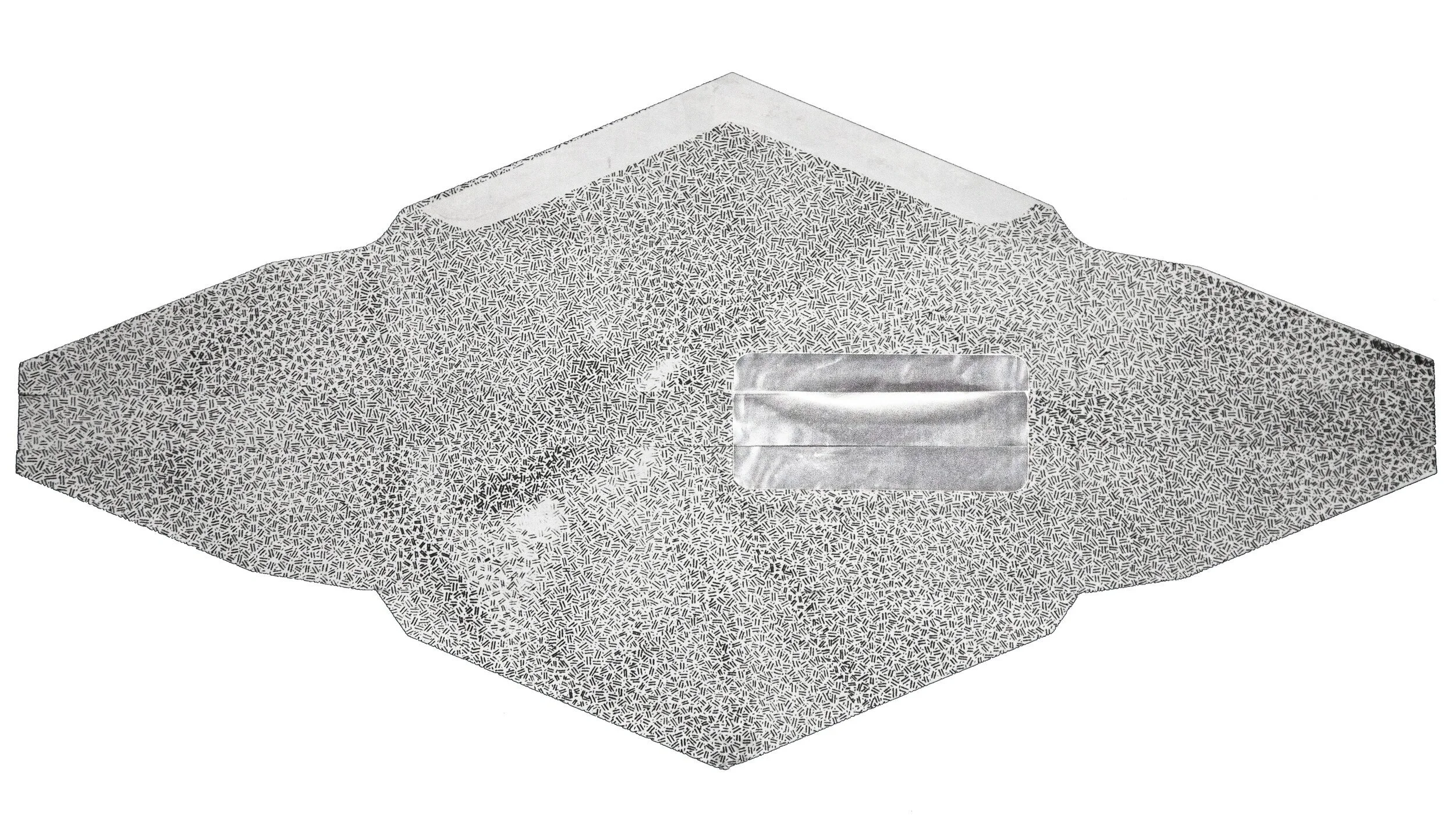 Transformer: (Untitled).18 X 22 inches. security envelopes, glitter, linen tape and foam core. 2013